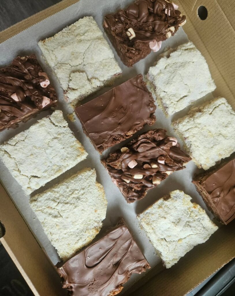 Every bake is crafted with heart and flavour. From start to finish, our team ensures every celebration cake, traybake, and savoury bake is carefully prepared with quality ingredients, baked to perfection, and finished with a warmth and attention to detail that you can taste in every single bite—creating delicious, memorable treats that keep every guest coming back for more.